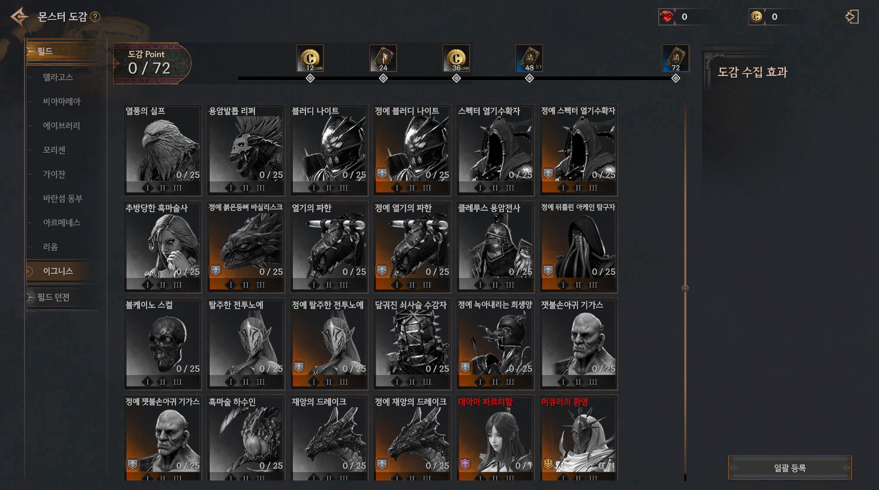 - 이그니스 도감을 완성하고 도감 수집 효과를 획득할 수 있습니다.