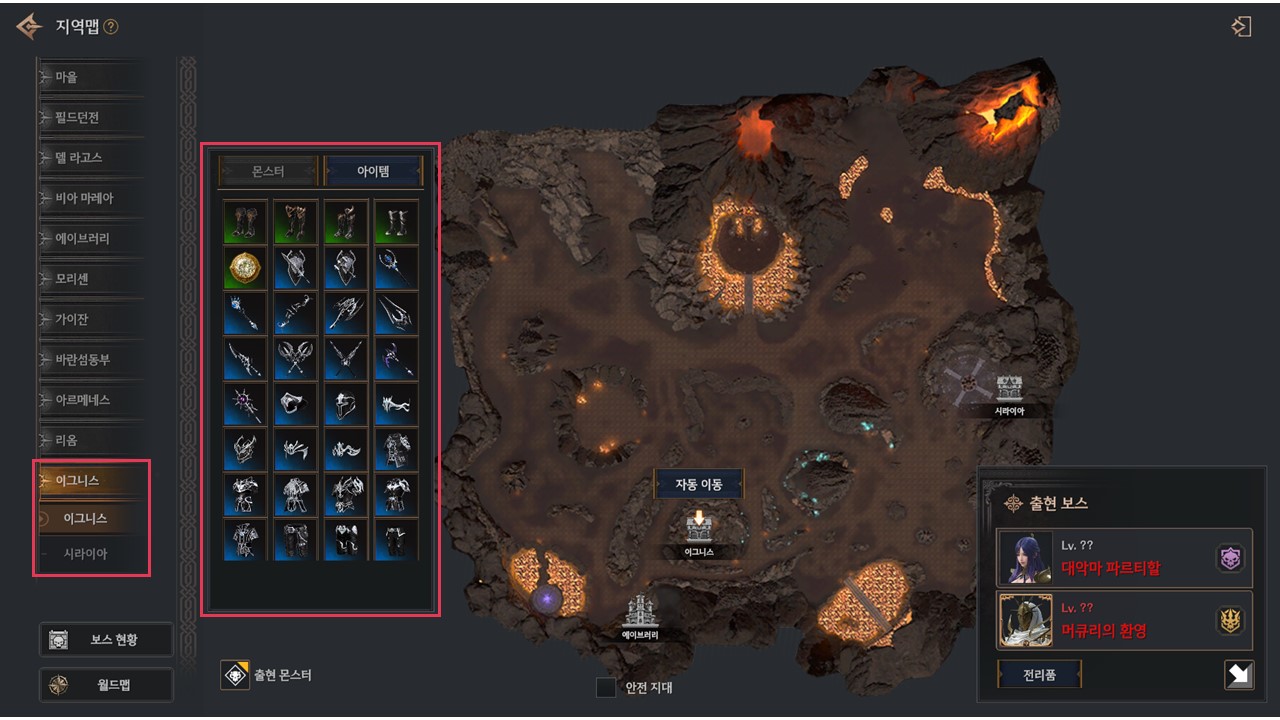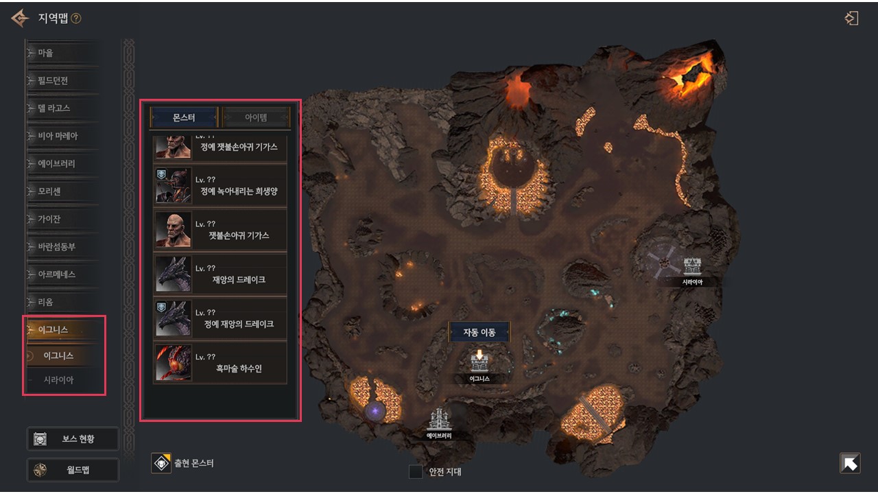 ▹ 이그니스 지역 몬스터 드롭 아이템