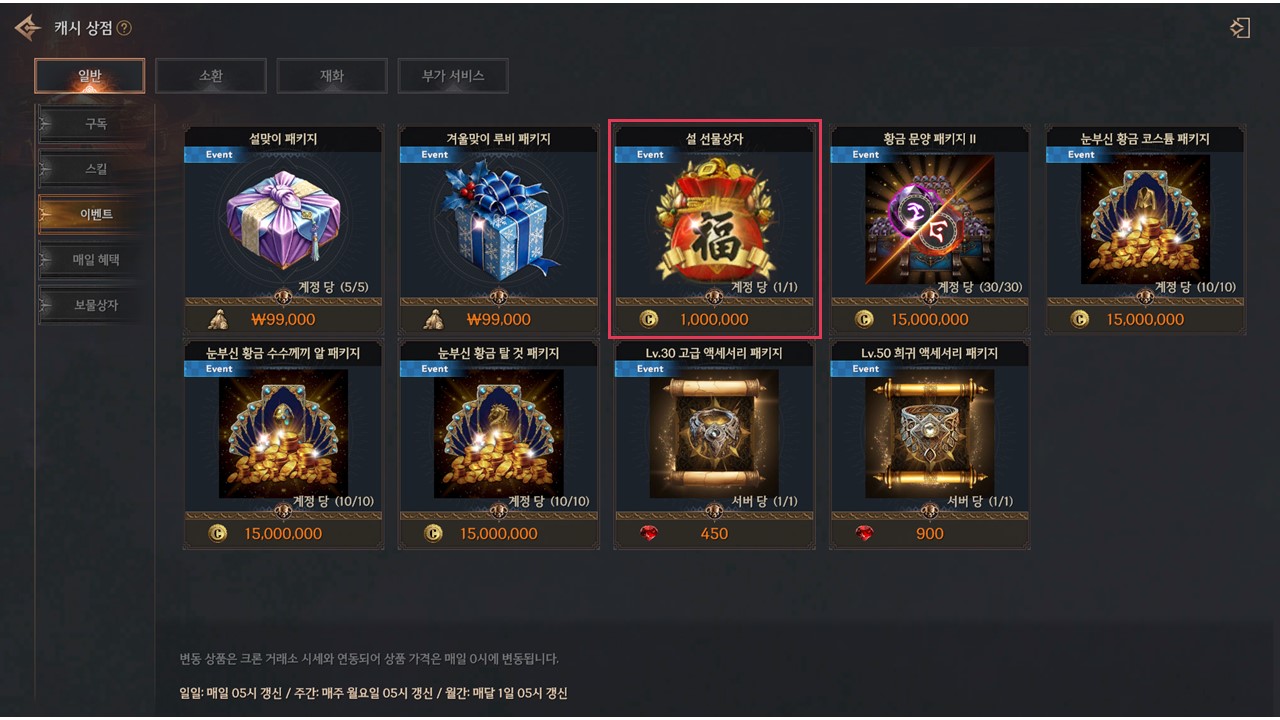 | ๊ฐ์ | | ์ค ์ ๋ฌผ์์ | ์คํฏ ์ด๊ธฐํ๊ถ | 5 | 1,000,000 ํฌ๋ก | ๊ณ์ ๋น 1ํ | | ๋๋ถ์ ์์๊ป๋ผ ์ (10ํ) | 5 | | ๋๋ถ์ ์ฝ์คํฌ ์นด๋ ์ํ๊ถ (10ํ) | 5 | | ๋๋ถ์ ํ ๊ฒ ์ํ๊ถ (10ํ) | 5 | | ์๋์ ์ฃผ๋ฌธ์ | 50 | | ์๋ ฅ์ ์ฃผ๋ฌธ์ | 50 |