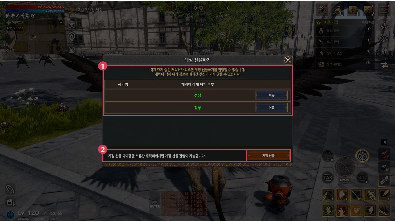 โ ๊ณ์ ์ ์ ๋ฌผํ๊ธฐ ์ํด์๋ ์ ์ฒด ์๋ฒ์ ์ญ์ ๋๊ธฐ ์ค์ธ ์บ๋ฆญํฐ๊ฐ ์กด์ฌํ์ง ์์์ผ ํฉ๋๋ค.