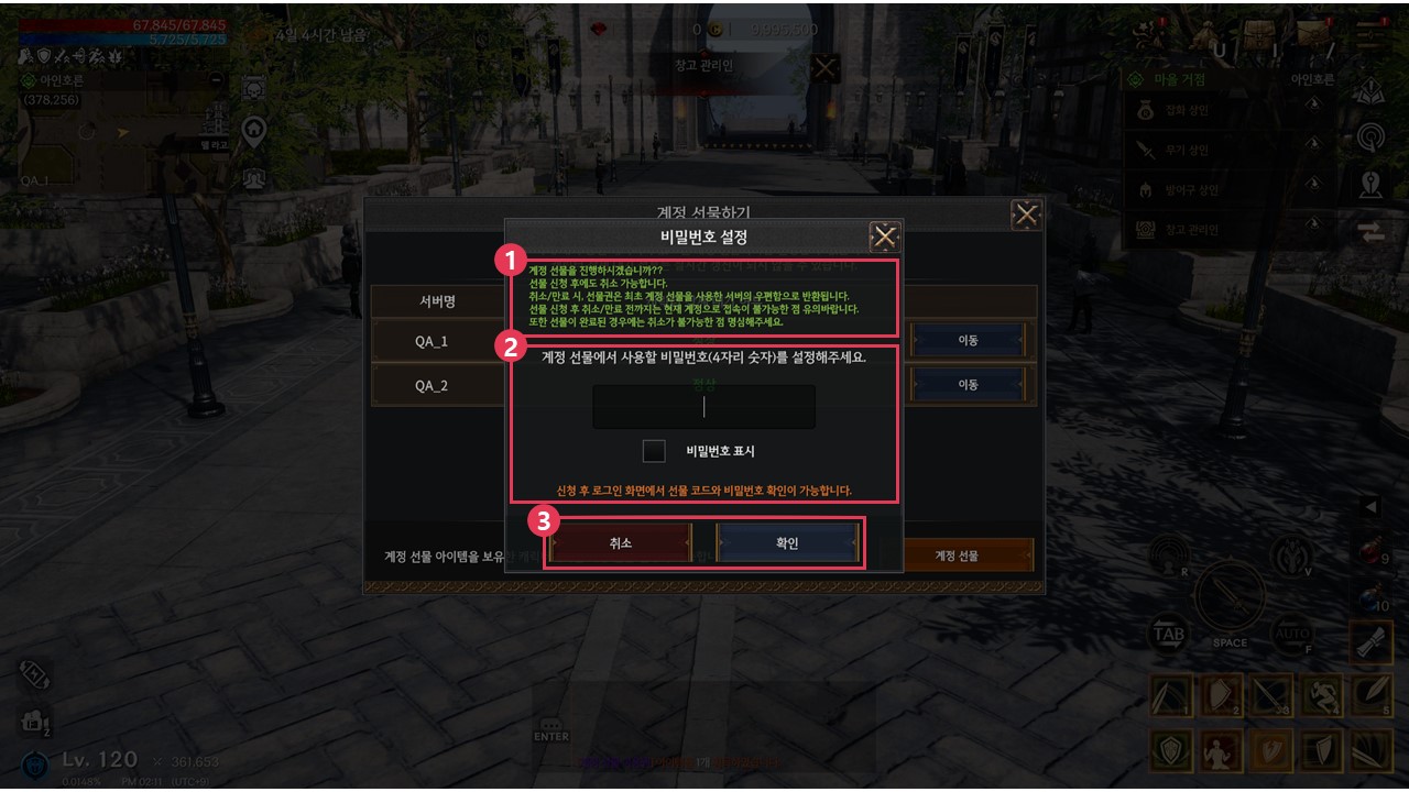 โข ์ด์ ๋จ๊ณ์์ ์ค์ ํ ๋น๋ฐ๋ฒํธ ์ ๋ณด๋ฅผ ํ์ธํ ์ ์์ต๋๋ค. ๋น๋ฐ๋ฒํธ ๋ํ ์ ๋ฌผ ๋ฐ๊ธฐ์ ํ์ํ ์ ๋ณด์ด๋ฏ๋ก