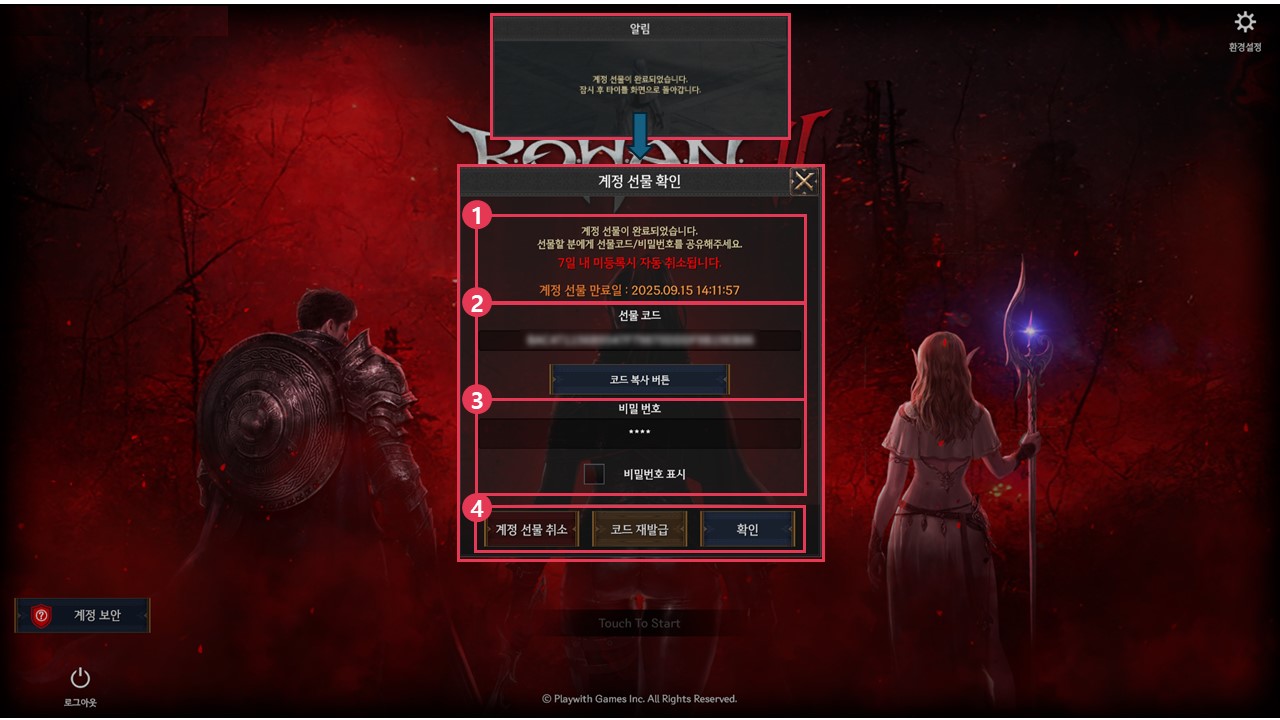- ์ ๋ฌผ ์ฝ๋/๋น๋ฐ๋ฒํธ๋ฅผ ์