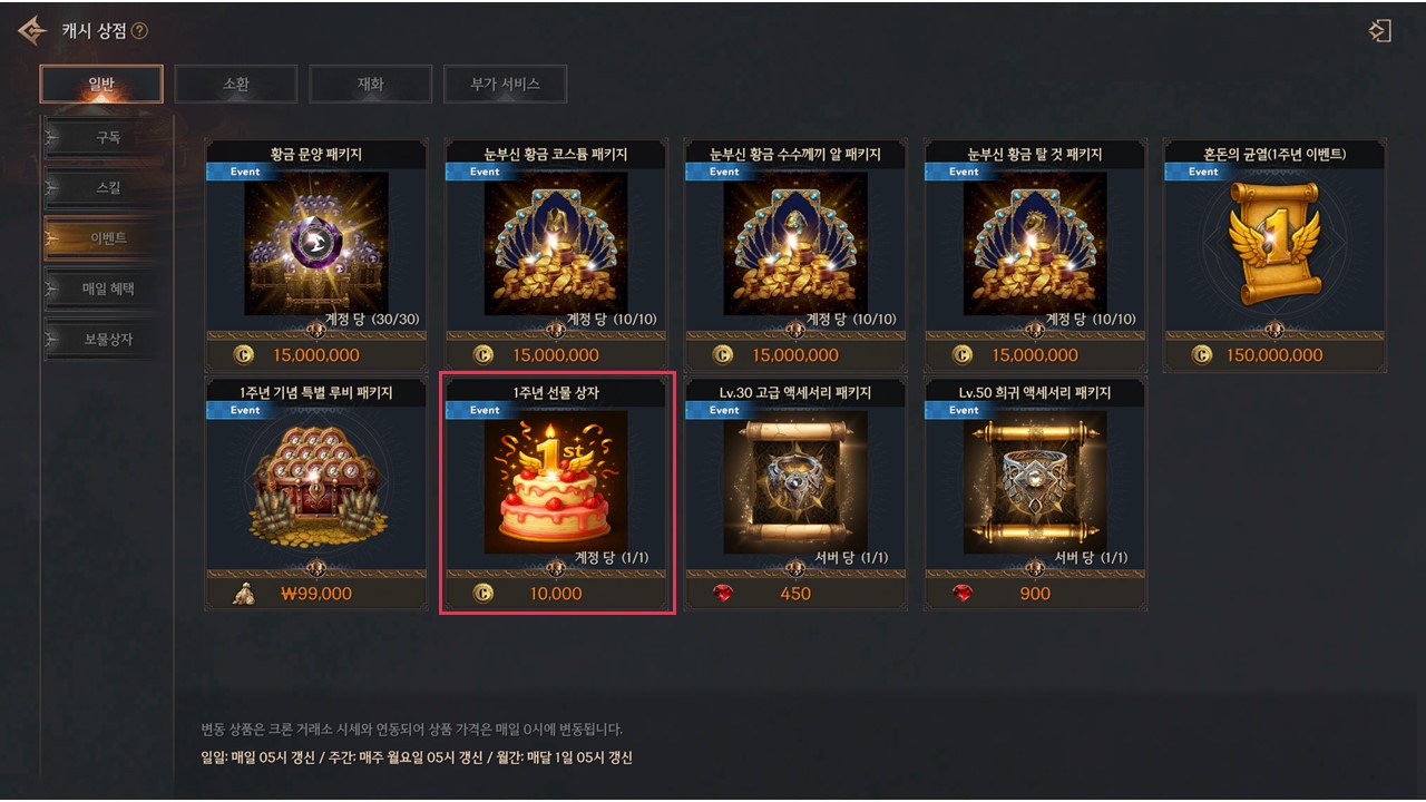 > μΆμ 보μμ μλ²λΉ 1ν μλ Ή κ°λ₯νλ©°, μΊλ¦ν° μΈλ²€ν λ¦¬λ‘ μ¦μ μ§κΈλ©λλ€.